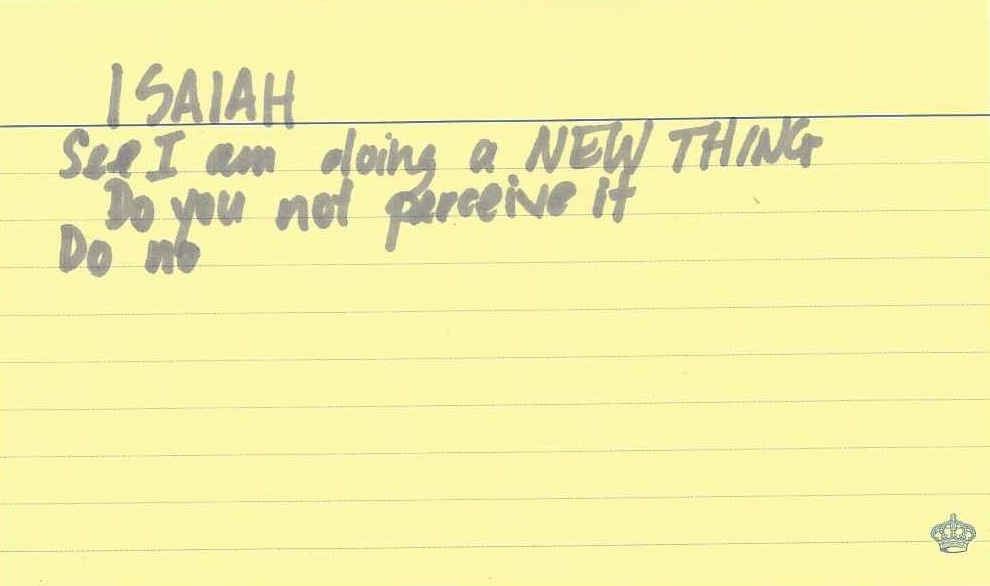 This morning when I looked for an index card to put some instructions on, on the top card of the stack was handwritten part of this same verse.