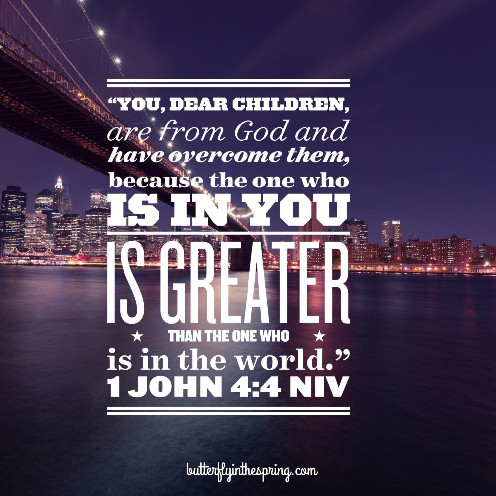 The Spirit of God in you when you received Jesus Christ (Immanuel, God with us) into your heart is greater than Satan and his schemes and attacks.