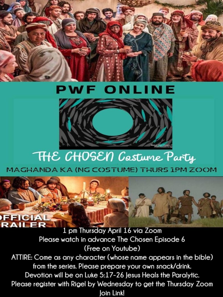 The “WIFE” in Praying W.I.F.E. Forum stands for Word-Inspired, Faith-Encouraged (credit to Roni) and we are seeking to coach women on being empowered by Scriptures in daily life. As one of the servants tasked to filter out unbibical material that may confuse or tangle us in plagues that come with adding or subtracting to the Word, I researched “The Chosen” with a click of a finger. Anyway, it’s global lockdown Coronavirus season with Enhanced Community Quarantine.
